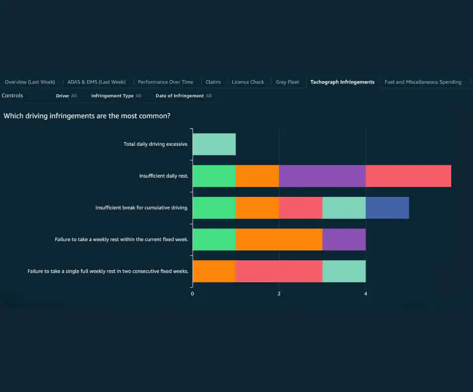 Customise your fleet management platform to see the fleet data you need for your fleet management. Brings together telematics, claims data, fuel costs, and maintenance records in one dashboard. See exactly how driving behaviour impacts safety, costs, and compliance across your operation